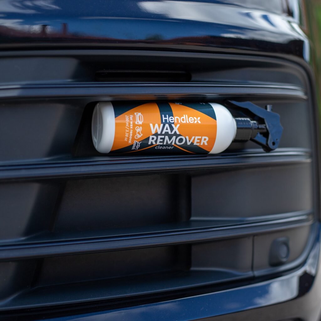 Spray Hendlex Wax Remover on the surface and wipe it with a microfiber towel. Rinse the surface with water and clean with Hendlex Paint Prepare. Wait until surface gets dry.